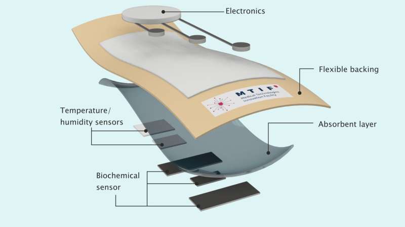 The new fabric-printed sensor continuously analyzes specific protein concentrations in a wound. Patients can use an app to read the data by holding a smartphone near the dressing. It enables them to book appointments with a clinician if needed.